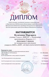 Куличкина М. - Дипломант 2 степени (преподаватель: Кощеева А.С.)