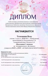 Тельманов В. - Дипломант 1 степени (преподаватель: Клементьева Т.А., концертмейстер: Логинов А.А.)