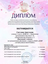 Симонова С. - Дипломант 2 степени (преподаватель: Кощеева А.С.)