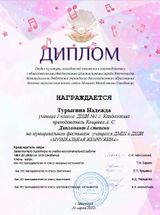 Турыгина Н. - Дипломант 1 степени (преподаватель: Кощеева А.С.)