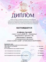 Агафонов А. - Дипломант 1 степени (преподаватель: Тарасенко Г.Ю.)