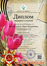 Краснолобова Дарья - Диплом лауреата 1 степени за работу «Письмо с фронта».