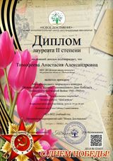 Тимофеева Анастасия - Диплом лауреата 2 степени за работу «Цена Победы».