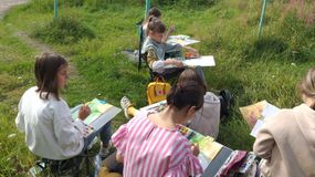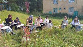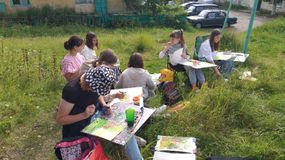 Ставшая уже традиционной, она собирает каждый год талантливых и креативных ребят для совместного творчества и постижения премудростей изобразительного искусства. В этом году она проводится в формате пленэра! Это значит, что художники рисуют непосредственно на природе. Сегодня ребята учились созерцать и изображать красоту растений с помощью одного из самых непредсказуемых художественных материалов -акварели.