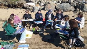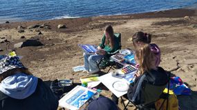 Сегодня второй день площадки "Юный художник"! Ребята упражнялись в работе "по-сырому" акварелью на примере воды и неба. Посетили нашу новую, замечательную морскую набережную)