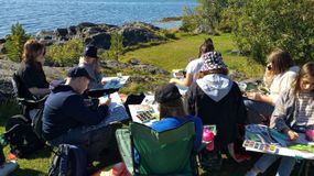 Площадка "Юный художник" продолжается! Сегодня прогулялись на Монастырский наволок. Учились изображать одни из непростых природных элементов: камни и деревья. Напитались солнцем и морским воздухом, продуктивно поработали!