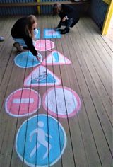 В рамках профилактической работы по соблюдению правил дорожного движения обучающиеся 4-го класса художественного отделения ДШИ № 1 посетили детский сад "Буратино". Для самых маленьких участников дорожного движения при помощи цветных мелков дети-худодники нарисовали дорожные знаки в виде детской игры в классики. Спасибо за участие Блиновой Кире, Старшовой Алене, Мустаевой Аурике, Тихоновой Елене, Щербаковой Полине!
