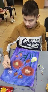 В преддверии праздника - День матери возникает вопрос КАКОЙ ПОДАРОК ПОДАРИТЬ ЛЮБИМОЙ МАМЕ? У обучающихся по программе "Волшебная кисточка" готов ответ: надо творить, причем необычными, нетрадиционными способами и техниками! 1 ноября состоялся мастер -класс "Цветочные фантазии", на котором дети рисовали нетрадиционными техниками рисования букеты цветов в подарок мамам. Взяв в руки губки, дети разными цветами радуги делали фон, втулками отпечатывали цветы! Фольга помогла создать необычную фактуру и форму цветов! Ватными палочками прорисовали тычинки, мелкие детали, насекомых и траву! с помощью зубных щеток нанесли акцент в виде пыльцы, былинок. Царила творческая атмосфера, дети сами придумывали новые применения нестандартным инструментам! В итоге получились замечательные, красочные картины - подарки для любимых мамочек! Творчество приносит радость всем! Поздравляем всех мам с наступающим праздником! С Днем МАТЕРИ!