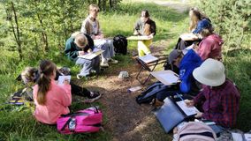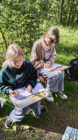 Сегодня ребята знакомились с возможностями сухих цветных материалов - карандашей и пастели. Рисовали различные природные элементы, ставили руку и привыкали к походным условиям.