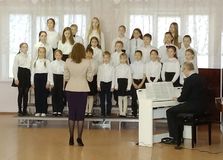 Гостей: родителей, обучающихся, преподавателей, представителей администрации, встретил своим выступлением хор средних классов.