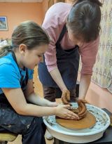 Невозможно передать словами какой спектр эмоций испытывали дети, осваивая новый вид творчества. Радостно было видеть их сияющие глаза, искреннюю заинтересованность такой непростой работой, где требуется не только сила, а сосредоточенность. Они всматривались в процесс движения круга, старались подчинить скорость вращения, нажимая на педаль, осваивали правильную постановку рук и степень нажатия на изделие для вытягивания, советовались с педагогами. Также учились применять новые инструменты: леску или тонкую струну для снятия изделий с круга, губку, которая необходима для увлажнения поверхности изделия во время его выкручивания, для сглаживания и выбирания излишка воды. Петли и цикли, предназначенные для снятия с поверхности изделия лишней глины, оттачивания ножки, выполнения углубления в основании изделия. Преподаватели старались уделить внимание каждому, чтобы дети получили положительный, успешный опыт и удовольствие от работы.