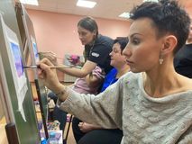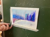 В рамках мастер-класса участники научились работать в технике "аля прима" (работа по сырому) и написали красивую зимнюю открытку. Для обучающихся выбранная техника так же была полезна тем, что дала общее понимание воздушной перспективы.