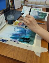 Изобразили глубину пространства за счёт цвета, тона и детализации переднего плана, улучшили навык использования техники "аля прима" (рисование по сырому листу бумаги).