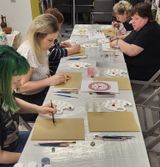 Цель акции - популяризация чтения и привлечение внимания к библиотекам как культурно-образовательным центрам. В 2024 году тема акции "Читаем всей семьей", и конечно она приурочена к Году семьи. Гости Библионочи стали учасниками творческого мастер-класса "Мезенская роспись". Преподаватели рассказали об истории возникновения мезенской росписи, поделились интересными фактами о ней и предложили учасникам нарисовать семейные композиции. Работы выполняли на крафт-бумаге, она послужила фоном. По трафаретам создавали композиции. В своих рисунках учасники изображали уточек, лебедей и коней. Основные фигуры раскрашивали в красный цвет и украшали символикой чёрного цвета! Мастер-класс прошёл в теплой, дружеской обстановке. Ведь это прекрасный повод для общения и укрепления внутрисемейных отношений. В итоге получились замечательные росписи, в которые авторы вложили душу и сердечную теплоту, любовь и заботу о членах своих семей! В завершении мероприятия всех угостили традиционными русскими кушаниями. Благодарим организаторов за представленную возможность участия! Участникам мастер-класса желае семейного благополучия!