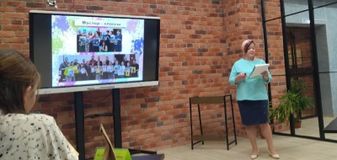 В первый день очного конкурсного испытания Екатерина Владимировна представила презентацию своей воспитательной практики «Воспитательный потенциал использования нетрадиционных техник рисования в образовательной деятельности».