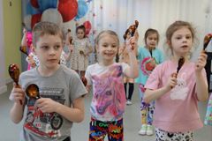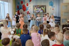 Именно такой концерт состоялся сегодня в детском саду " Белоснежка ". Номера " Скоморошин" сменялись не менее интересными инструментальными и танцевальными композициями воспитанников других возрастных групп (средней и старшей). Одни дети танцевали с бубнами, другие рассказывали музыкальную сказку.