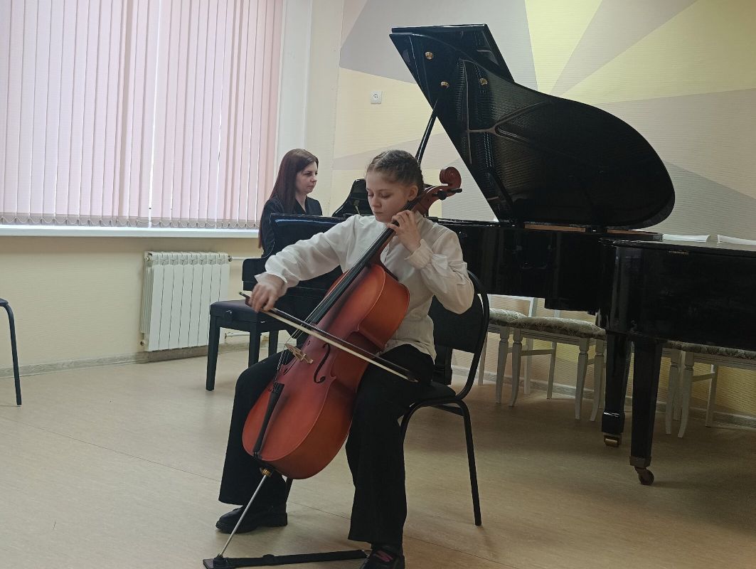 В концертной программе прозвучали произведения в переложении для виолончели в исполнении Хариной Кристины и Буланова Савелия (класс преподавателя Киселевой Тамары Владимировны). Трогательно и изящно прозвучало известное произведение «К Элизе», которое исполнила ученица Оксаны Владимировны Екатерина Куликова.
