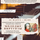 Обращаем ваше внимание, что изменилось место проведения муниципального этапа IX регионального конкурса юных пианистов «Молодые виртуозы», посвящённого 270-летию со дня рождения В.А. Моцарта!
